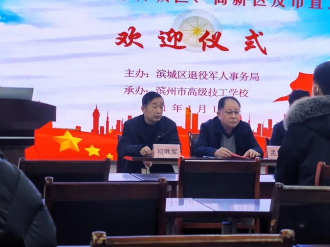 1月15日,2020年度第二期滨城区、高新区及市直退役军人适应性培训暨职业技能培训开班仪式在滨州市高级技工学校举行。滨城区退役军人事务局党组书记、局长初胜军,滨城区退役军人事务局党组成员、副局长崔利军,滨州市高级技工学校党委副书记、副校长孟维赞,滨州市高级技工学校党委委员、副校长刘岳参加。