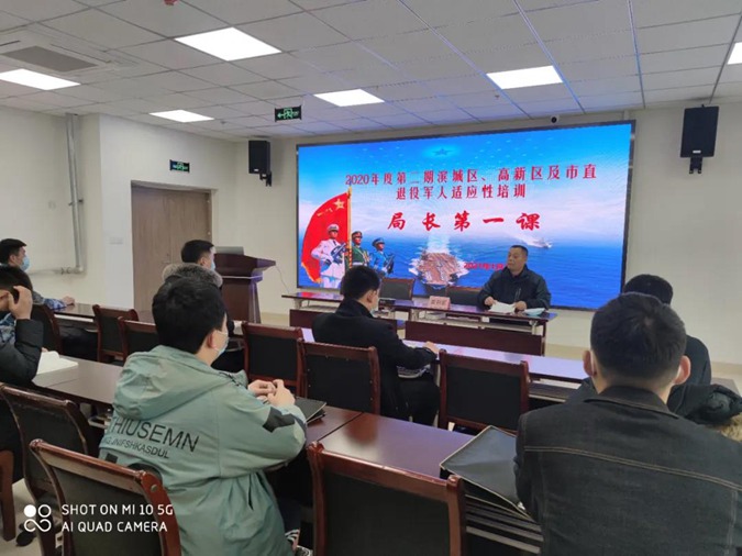 滨城区退役军人事务局党组书记、局长初胜军为学员上第一课。