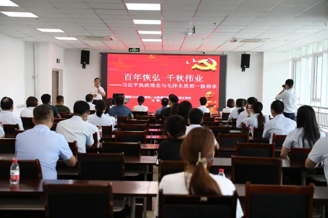 参观结束后,大家来到北平楼三楼报告厅,聆听王树林的党史讲座——《百年恢弘 千秋伟业》。王树林通过经典的史实、生动的故事、形象的描述,从习近平总书记的毛泽东情节,讲到到伟大的民族复兴之路,带领大家重温共产党人的百年光辉历程,解读了中国共产党人的初心和使命,讴歌了党的光辉业绩和伟大理想。