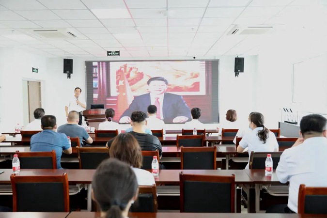 8月3日上午,滨州市高级技工学校三楼报告厅内气氛热烈、掌声阵阵,学校党委书记、校长王树林正在为建行滨州分行、滨城区退役军人事务局部分党员干部做党史教育报告。