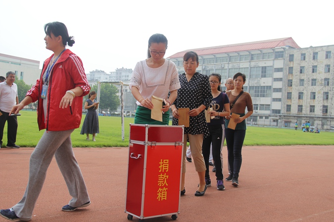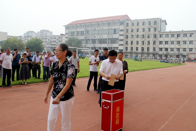 此次捐赠活动是学校党委响应上级党委号召,积极开展社会募捐、奉献爱心活动的一项重要举措。在《爱的奉献》悠扬的乐曲声中,全校120余名党员干部职工共计捐款两万五千余元,为改善民生、促进和谐、弘扬社会主任核心价值观贡献出了自己的一份力量,也为全校一千四百名在校生上了一堂生动的爱心德育教育课。学校校长、党委副书记王树林同志、副书记史文莲同志、副校长刘仲凯同志等领导参加了募捐活动。