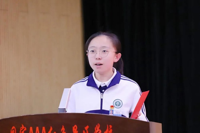 滨州市高级技工学校团委副书记付首存宣读《团章》中关于团员的权利和义务