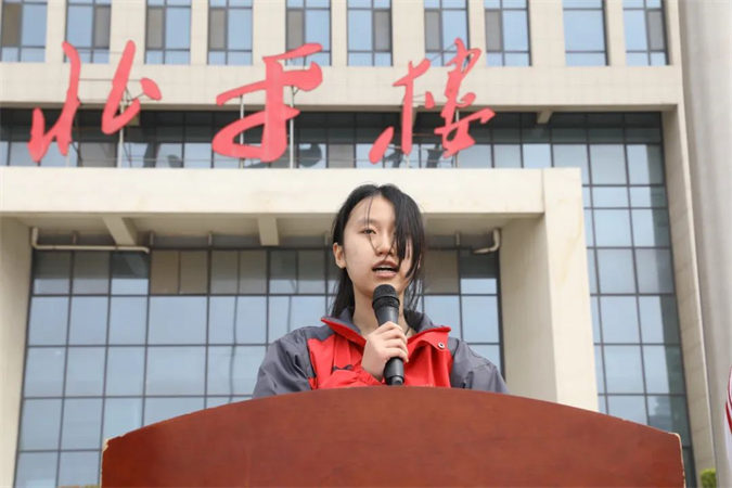 升学部2022级春考学前1班(刘志丹班)贺茹诗同学怀着对革命先烈无比崇敬的心情进行国旗下演讲。她呼吁全体同学不忘历史,珍惜现在,传承革命精神,矢志不渝地为国家和人民而奋斗,在新征程中续写时代华章!