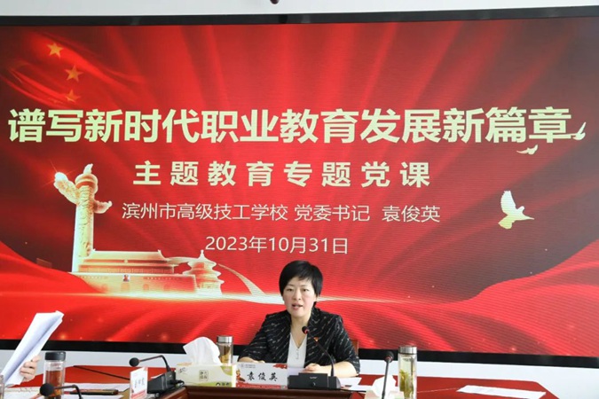 为深入推进学习贯彻习近平新时代中国特色社会主义思想主题教育,教育引导广大党员干部在以学铸魂、以学增智、以学正风、以学促干方面取得实效,10月31日上午,滨城区委常委、宣传部部长、统战部部长,滨州市高级技工学校党委书记袁俊英以“谱写新时代职业教育发展新篇章”为主题,为各支部书记、行政支部全体党员讲授专题党课。
