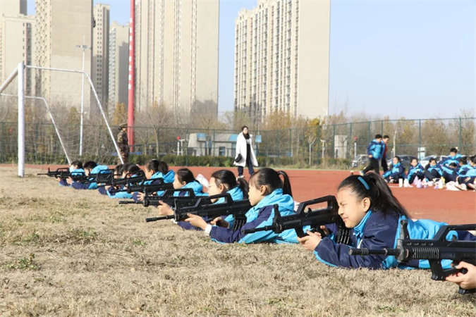 拓展活动结束后,同学们分批次参观了红色展馆和国防教育展厅。在滨州市高级技工学校红色讲解员的引领下,同学们一边聆听革命先辈抛头颅、洒热血的革命历史,一边驻足端详珍贵的老照片,仿佛那峥嵘的革命岁月就在眼前。一个个感人至深的革命事迹、一件件镌刻着革命历史的实物,在孩子们心里烙下深深的红色印记。在国防教育展厅,同学们学到了很多现代国防和武器装备的知识,还亲手体验了九五式步枪射击。