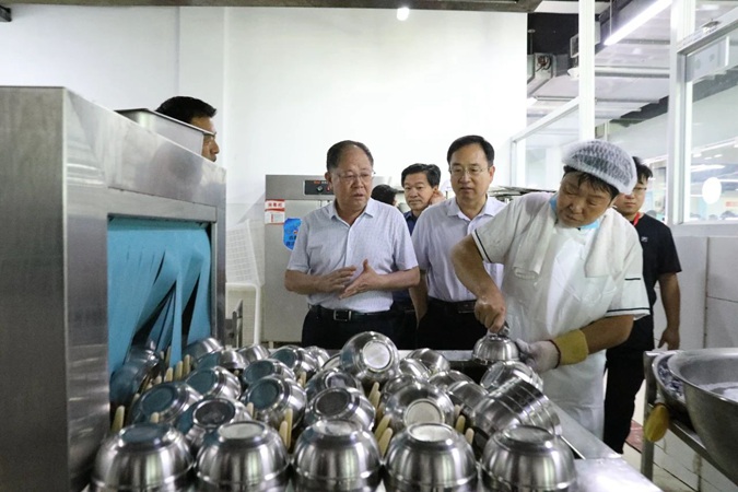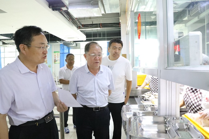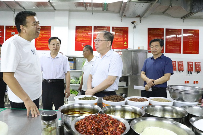 在学校食堂,孟维赞一行听取了食品安全日常工作开展情况汇报,并重申了食堂管理安全要点,强调夏秋季季节性食物中毒防控的重要性,要求工作人员提高认识,切实保障用餐安全。