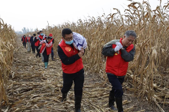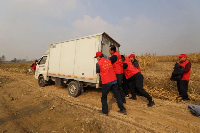 寒凉的天气、泥泞的土地都无法阻挡志愿者们抢收玉米脚步,在村民赵吉兰的农田里,大家干劲十足,团结协作,掰、装、扛、运,忙而不乱,热火朝天,一上午的时间就帮村民把玉米全运回了家。赵吉兰激动地热泪盈眶,不住地感谢党和政府。
