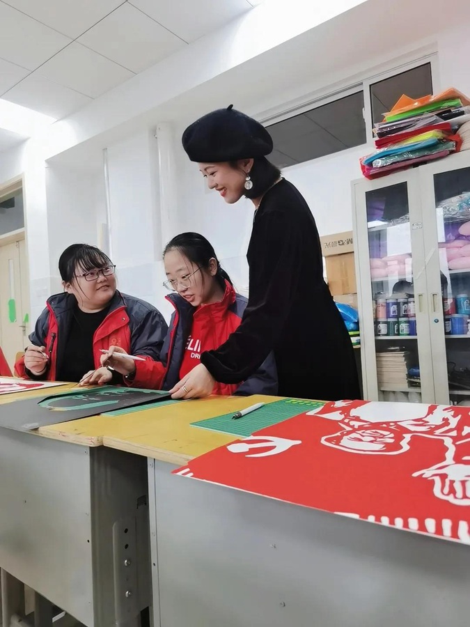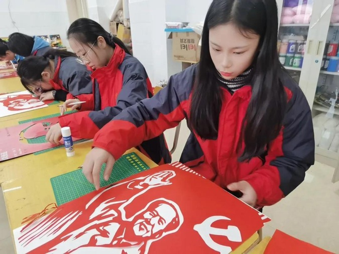 参赛作品中既有体现民俗文化的《跃龙门》等作品,也有红色主题、寄语祖国的《中国魂》等作品,这些内容的展现与学生日常的学习是密不可分的。滨州市高级技工学校学前教育教学中心依托红色文化环境及资源,积极探索专业教学与红色文化的双向结合。利用好课堂教学主阵地,在手工教学中开设剪纸课程,并在题材中融入社会主义核心价值观等红色教育内容,既锻炼了学生的专业技能又陶冶了他们的精神世界。同时发挥学生手工社团的引导作用,带领学生制作了纪念毛泽东同志诞辰127周年等系列剪纸作品,通过不同的途径,培养学生扎实的专业功底,夯实学生的精神基石。