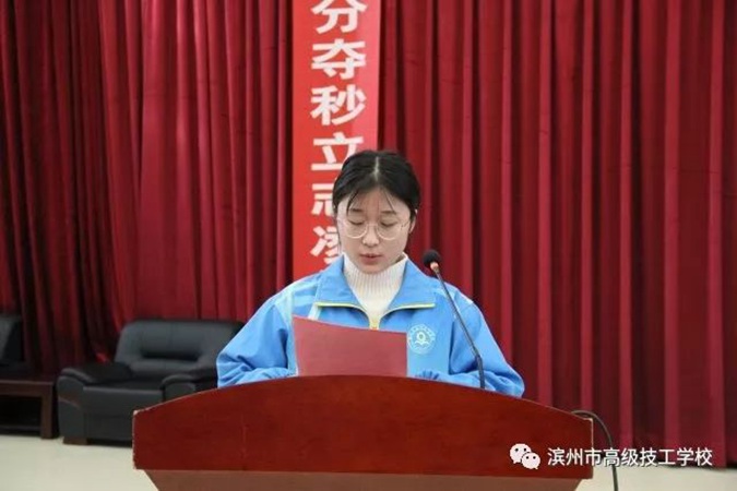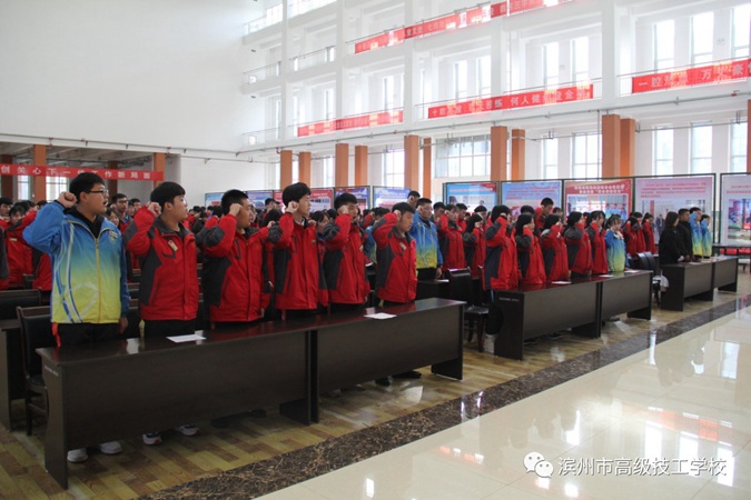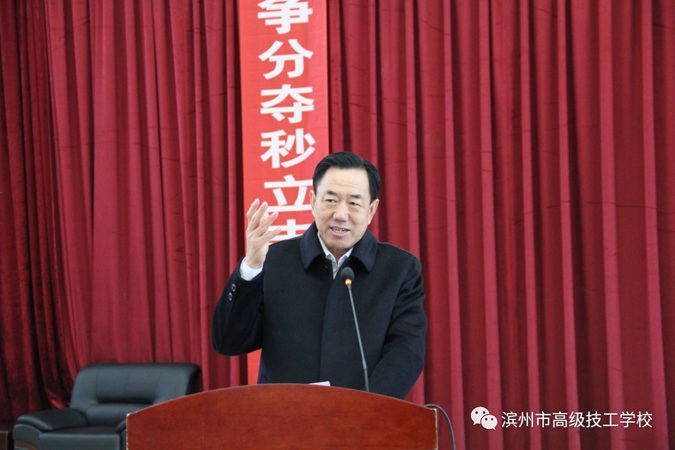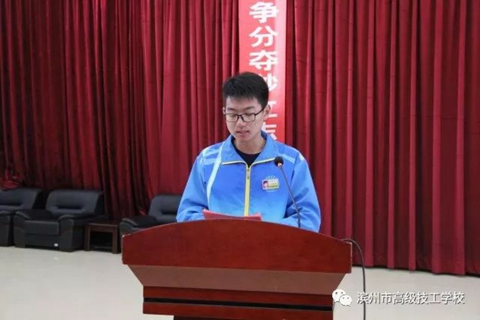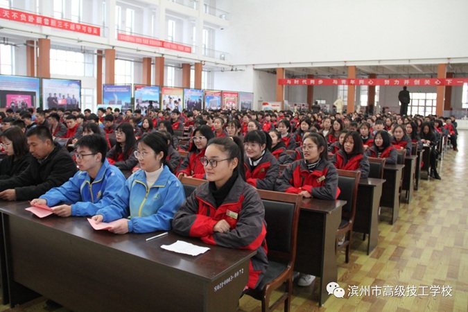 12月1日上午,滨州市高级技工学校(滨州市中等职业学校)隆重举行2020届学生春季高考冲刺誓师大会,2017级全体师生及学生家长共同参加。学校党委书记、校长王树林,党委委员、副校长刘岳,教务科科长赵鹏飞,基础部主任张绪强,学工科副科长张瑞在主席台就坐。大会由刘岳主持。