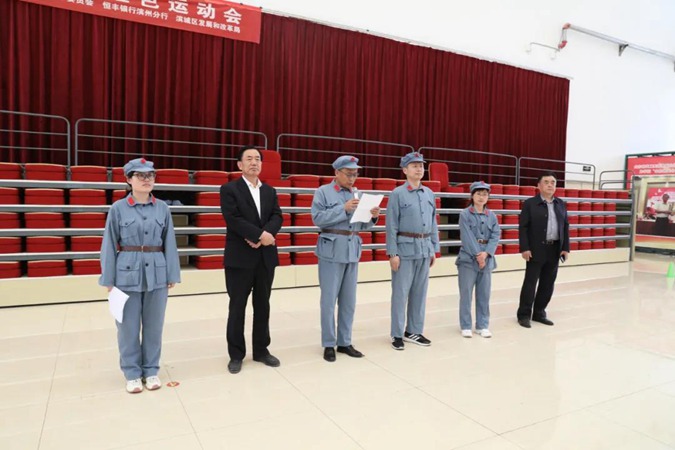 进4月16日下午,滨州市发展改革委联合恒丰银行滨州分行、滨城支行及滨城区发改局,在滨州市高级技工学校南昌楼(体育馆)共同举办了一场“老渤海精神”红色趣味运动会。市发展改革委党组副书记李解放,恒丰银行滨州分行副行长、工会主席郝县明,滨城区发改局党组书记、局长王晓勇,滨州市高级技工学校党委书记、校长王树林参加活动。