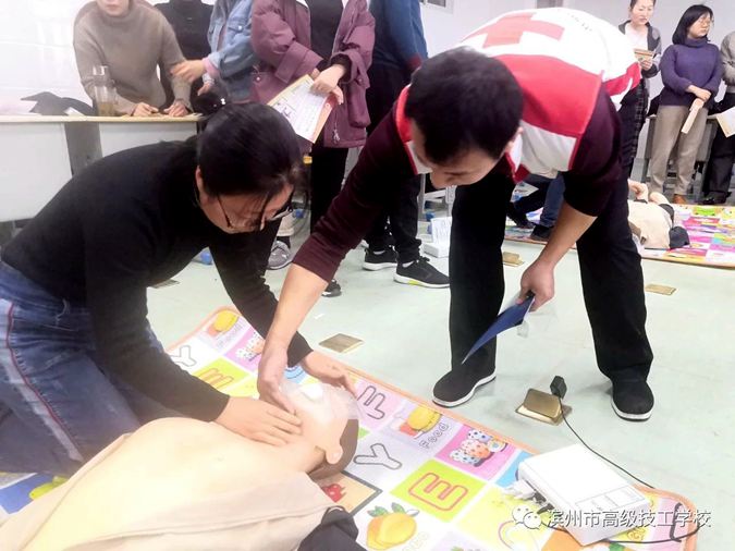 为保障学生安全,普及应急救护常识,提高教师救护能力,12月24日,滨州市高级技工学校组织了红十字救护员培训班,学校36名教师在遵义楼参加了为期2天的救护培训。红十字会救护培训教师王艳梅和学校老师许建光授课,讲授救护理论知识和救护操作技能。