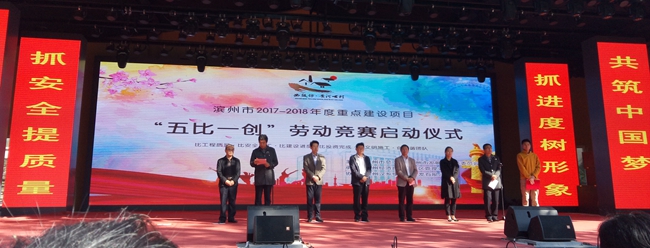 10月24日上午,在滨州经济技术开发区召开滨州市2017-2018年度重点建设项目“五比一创”劳动竞赛启动仪式,我校基建办公室主任王之冰、副主任张浩参加。