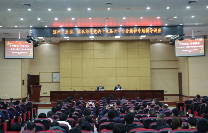 ▲2021年12月2日,王树林应邀为滨州工业园、滨北街道作党的十九届六中全会精神专题报告