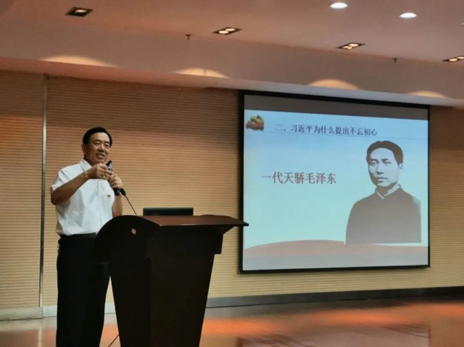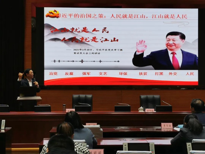 ▲2021年4月13日下午,王树林应邀为市委办公室党史学习教育专题学习班做党史教育报告