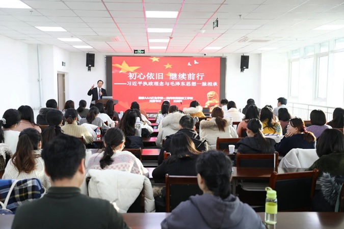 ▲2021年4月20日下午,王树林为滨州学院理学院全体教工及学生党员讲党史
