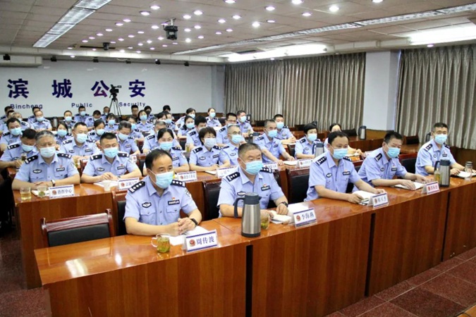▲2020年6月24日,王树林以视频会议的形式为滨城区公安分局500余名党员及干警讲座