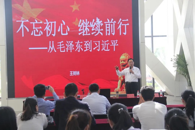 ▲2020年6月30日,王树林应邀为滨州市住建局200余名党员干部作报告