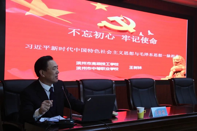 ▲2021年3月14日,王树林应邀为滨州实验学校师生及家长作建党百年专题讲座