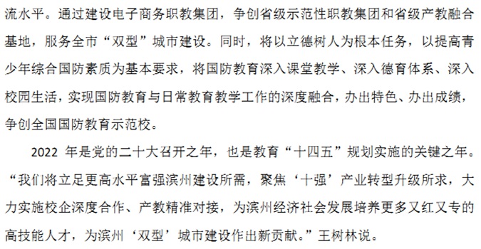 今年2月16日,《滨州日报》头版头条以《解锁一年吸引3万人次观摩的“流量密码”》为题,专题报道学校红色办学经验以及在职教改革、产教融合等方面取得的成就