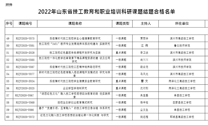 聚焦红色文化 强化科研育人 | 滨州市高级技工学校5项省厅级科研课题喜获结题