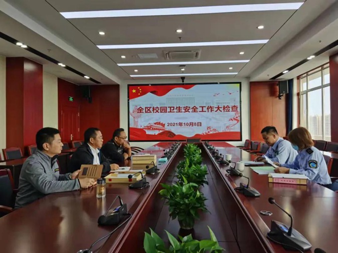 10月8日下午,滨城区卫生健康执法大队王汉彬科长一行到滨州市高级技工学校对公共卫生安全进行督导检查。总务科科长褚兴国、安全办主任王文利陪同检查。