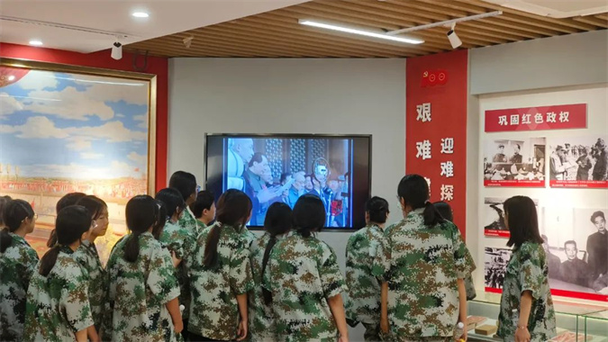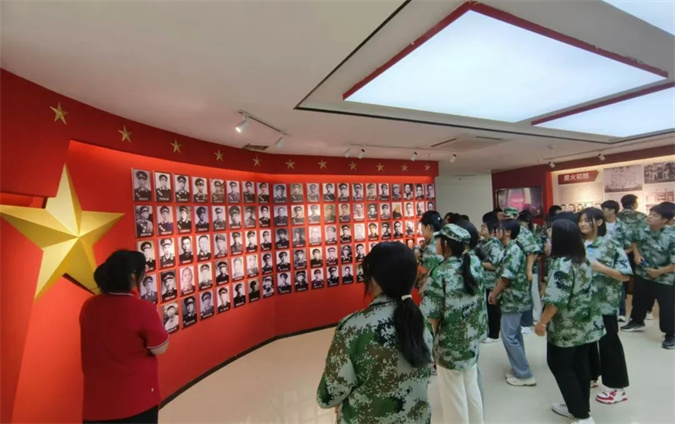 在红色校园的东方红广场,同学们瞻仰伟人塑像,缅怀革命先驱的丰功伟绩;在优秀毕业生荣誉墙前驻足,李梦迪、彭中山、梁光德、韩振凯,一个个闪光的名字激励大家勇往直前,立志报国。在党史展厅,陈列着大量的历史资料,生动地再现了革命先烈们为了民族独立和人民幸福而英勇奋斗的光辉历程。学生们驻足观看,仔细聆听讲解员的生动讲解,直观地了解中国共产党从萌芽到不断发展壮大的曲折历程,学习党领导全国人民革命、建设、改革的奋斗史、创新史和自身建设史。在国防教育展厅,同学们参观了中国人民解放军的现代化武器装备,学习了部队发展史,了解了革命前辈不怕牺牲、报效祖国的光荣事迹。