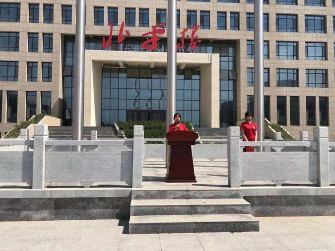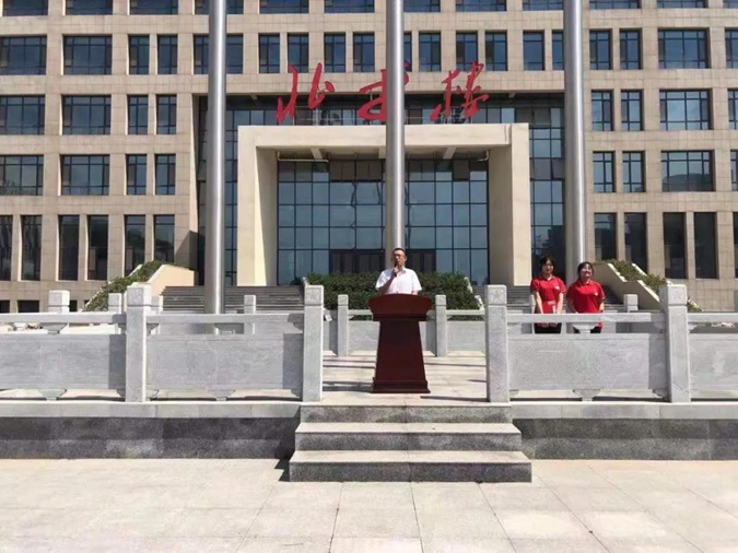 6月21日上午九点四十分,滨州市高级技工学校全校师生齐聚东方红广场,举行第十七周升旗仪式。