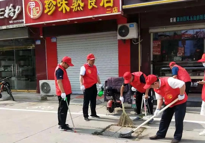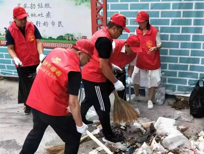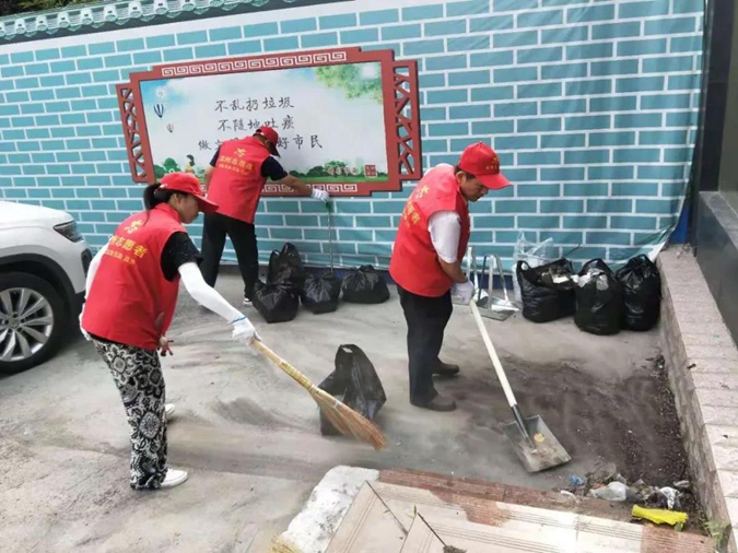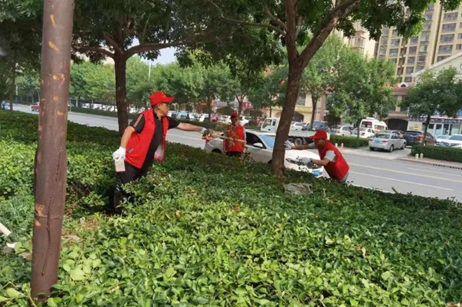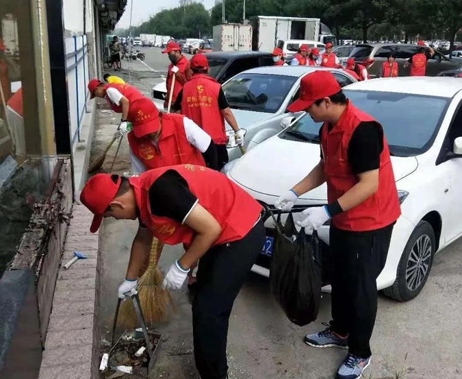 志愿者们发扬不怕脏、不怕累的技校精神,身穿红马甲,头戴志愿帽,手持扫帚、铁锹等工具,清除路面及绿化带内垃圾和杂草、清理墙面小广告,规范车辆停放,劝导不文明行为。