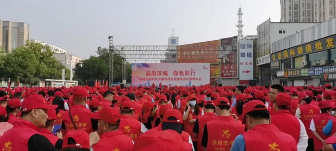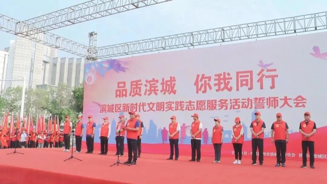 7月4日,“品质滨城 你我同行”滨城区新时代文明实践志愿服务活动誓师大会举行,进一步掀起了创建全国文明城市和卫生城市复审工作的热潮。