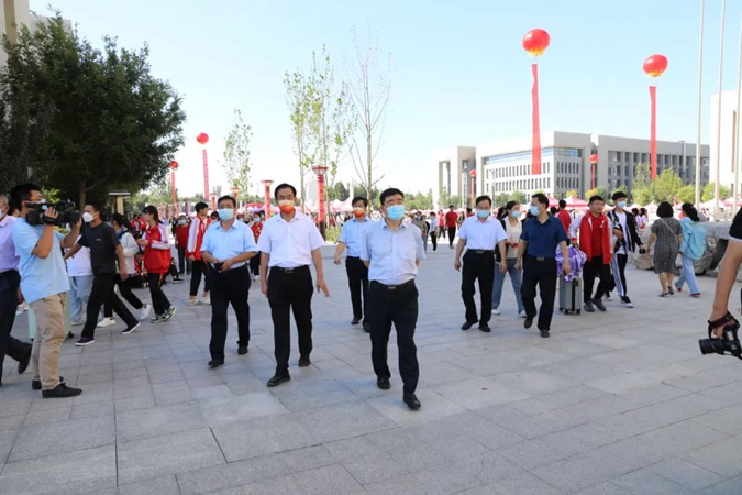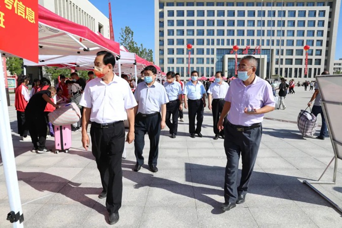 党委书记、校长王树林,党委委员、副校长刘仲凯,党委委员、副校长刘岳,党委委员、纪委书记、市纪委监委监察专员宋志刚与相关科室、教学中心部负责人一起来到迎新现场,看望前来报到的新生和家长,了解迎新工作情况。