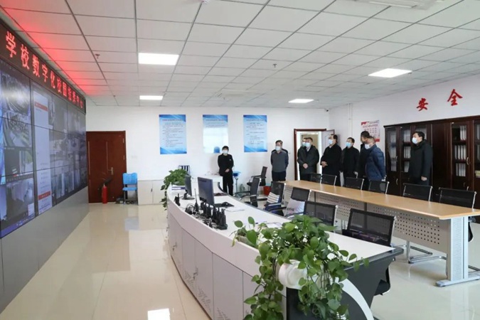 颜波一行现场查看学校疫情防控措施落实、疫情防控物资储备和安保系统使用等情况,详细了解了疫情防控及校园安全工作。
