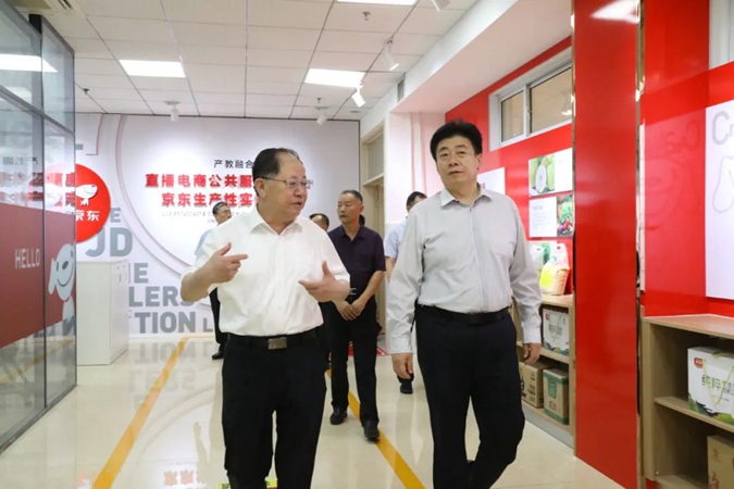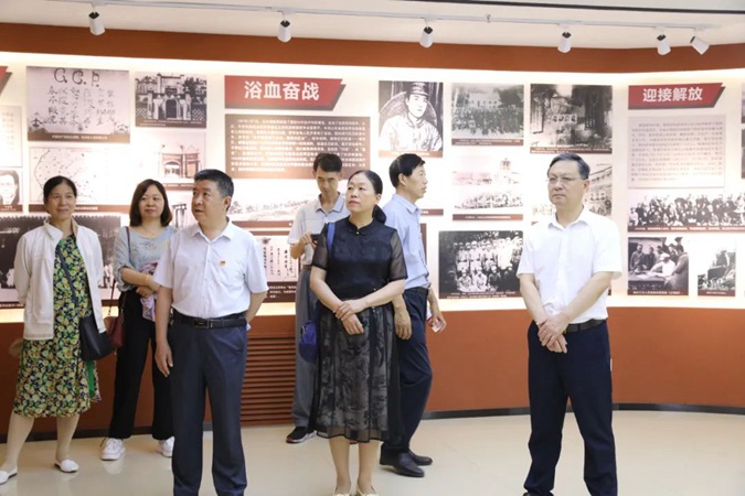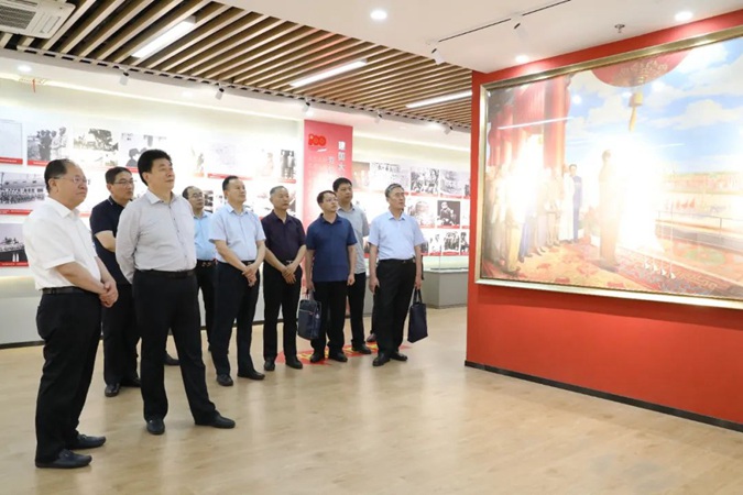 刘磊一行参观了东方红广场 、嘉兴楼实训中心、韶山楼班级红色文化;经红色连廊,到井冈山楼现场参观了校企合作项目“产教工坊”、京东直播实训室、VR教室;经“南泥湾”师生劳动基地,到古田楼参观了学生公寓;随后到北平楼参观了廉政文化作品展、伟人塑像厅、红色藏品展厅、图书馆、百年党史馆等红色展厅。