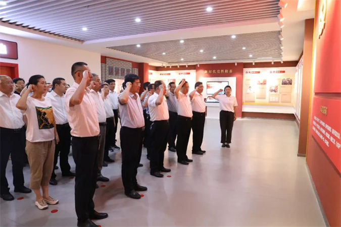 最后,参加活动的党员干部面对鲜红的党旗,庄严举起右手,重温入党誓词,表达了不忘初心、牢记使命的信念和决心。