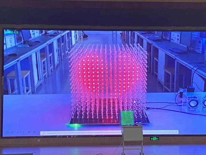 ▲电子焊接加编程控制制作3D16光立方《匠心向党 光耀四方》 指导教师:隋雨君 徐莹莹