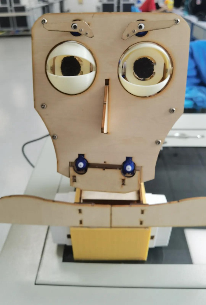 ▲语音对话机器人“小杰”现场为党献歌《我的中国心》 指导教师:孔德龙