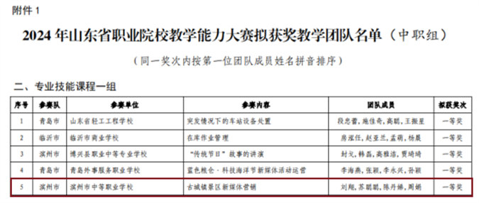 荣耀加冕!滨州市中等职业学校(滨州市高级技工学校)荣获山东省职业院校教学能力大赛一等奖