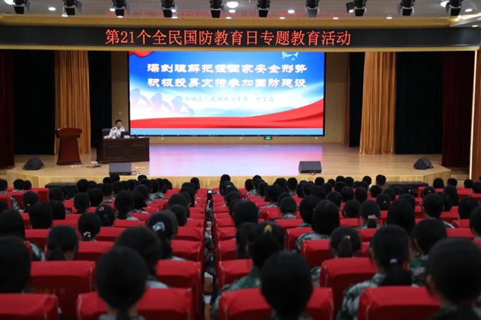 9月18日是第21个全民国防教育日,也是“九•一八”事变90周年纪念日。为增强学生的国防安全意识,厚植家国情怀,滨州市高级技工学校组织开展了国防教育进校园活动。滨城区人武部政委叶莹磊为2021级军训新生进行国防教育讲座,滨州市高级技工学校党委书记、校长王树林参加活动,党委委员、副校长刘岳主持。