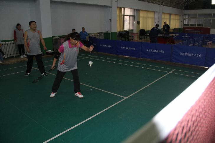 为活跃学校文化生活,增强教职工体质,我校于2014年12月9日至12月25日组织各系部教职工进行羽毛球比赛。比赛采用100分制(每球得分制),比赛实行轮换制,比分先到100分的一队获胜。每场比赛中任何一方得到20分或20分的倍数时,本队轮换1人继续比赛,任何一方率先得到50分,双方交换场地。赛场上,选手们谨慎把握击球的力量、速度,灵活挥动手中的球拍,白色的羽毛球上下翻飞,每一次精准的落点无不令场外观众拍手称赞。队员间配合默契,及时的转体,有力的扣球,合理地运用各种击球技术和步法往返对击,激烈的赛事随着比分的起伏紧张地进行,场内气氛十分活跃。