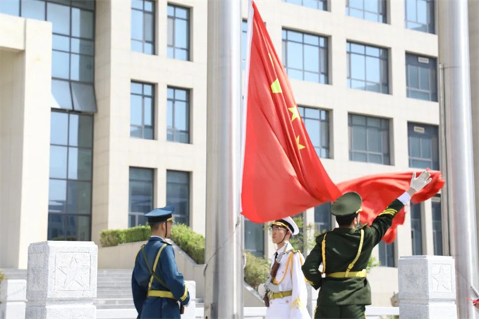 仪式在庄严的国歌声中拉开帷幕。全体师生面向国旗,庄严肃穆,行礼致敬,用嘹亮的歌声表达对祖国的热爱。