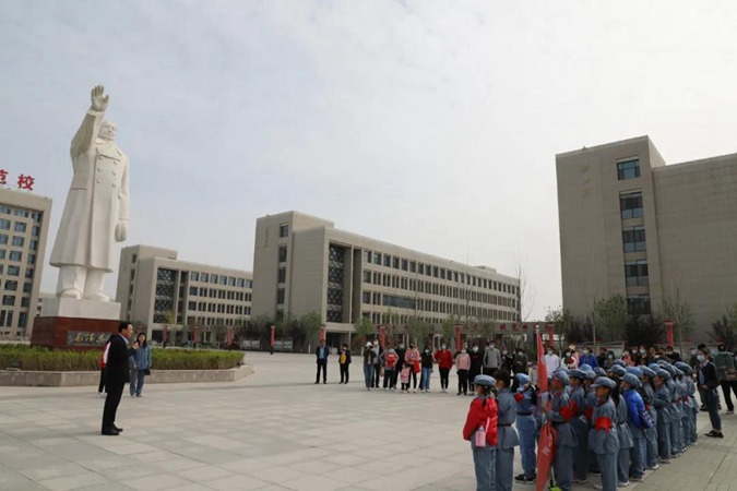 4月11日,滨州实验学校南校区第九头雁先锋队的100余名师生及家长,来到滨州市高级技工学校开展红色研学活动。