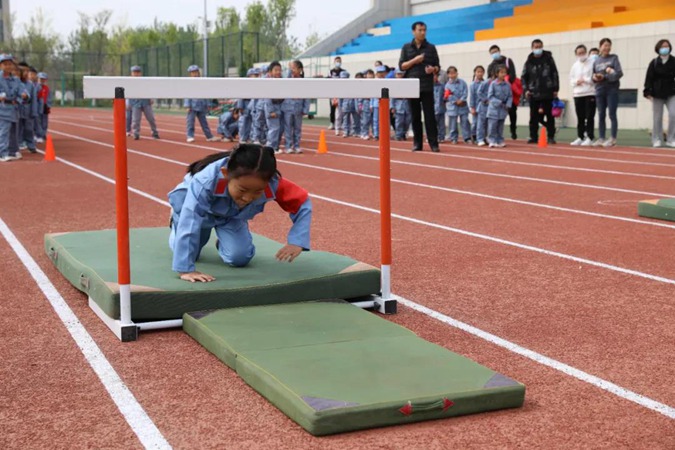 参观结束后,同学们来到了体育场参加红色趣味运动会。在爬雪山、过草地的运动项目中体验艰苦奋斗、自强不息的红色革命精神。