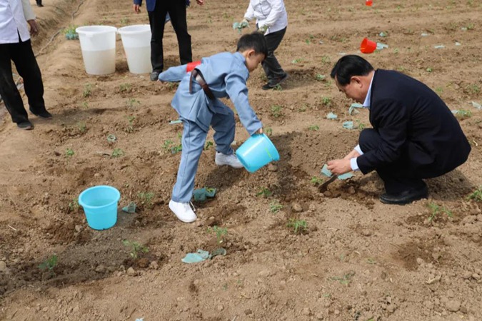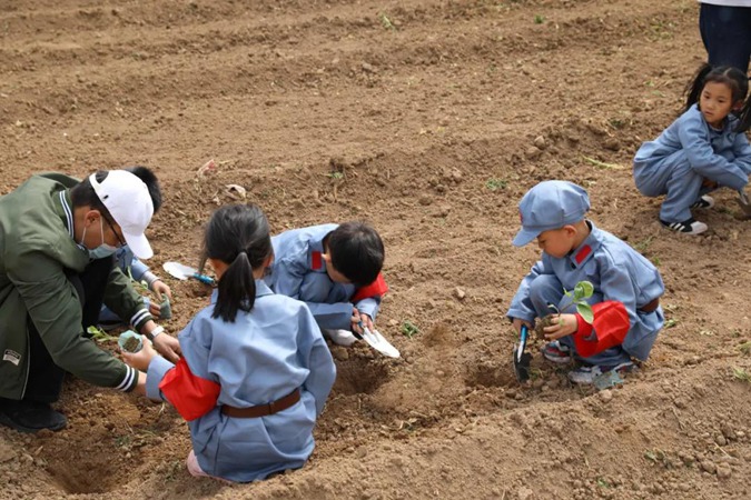 随后,大家来到“南泥湾”劳动基地,亲手种下蔬菜幼苗,“小红军”们不怕脏、不怕累,亲身体验劳动的艰辛与快乐。