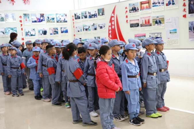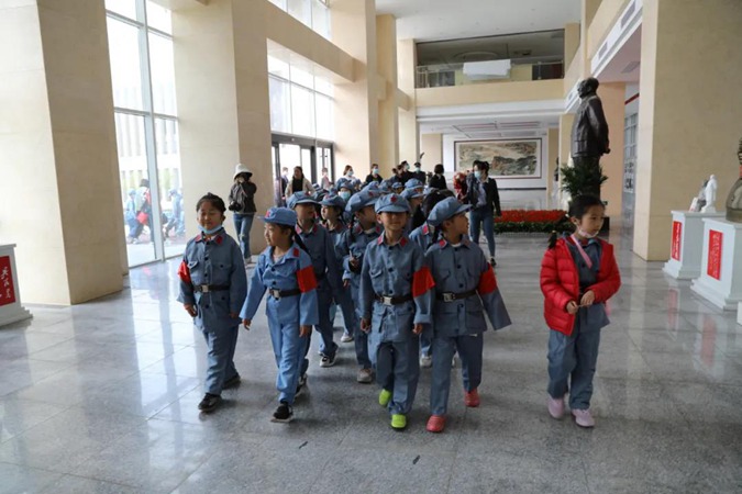 小学生们穿上红军服,变身革命小战士,在滨州市高级技工学校党委书记、校长王树林亲自引领讲解下,参观了东方红广场、嘉兴楼实训中心、韶山楼红色育人展厅、井冈山楼红色连廊、北平楼红色藏品展馆等,深刻感悟红色精神。