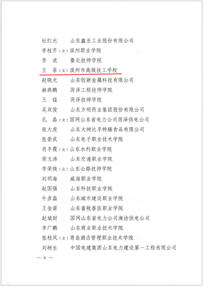 近日,山东省人力资源和社会保障厅公布2024年度山东省技术技能大师名单,滨州市高级技工学校教师王菲荣获“山东省技术技能大师”称号。