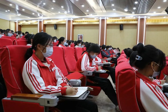 同学们边听边记,不时报以阵阵掌声,通过聆听王树林校长的报告,对党的二十大报告精神有了更加深入的了解和体会。