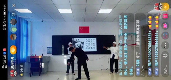 两个班级文化的直播分别以爱党爱国教育主题班会和话剧《吉鸿昌》进行展示。在同学们的庄严宣誓声和清脆的革命枪声里,观众们感受到了浓浓的爱国情怀,也对主播和演员们的精彩表演大加赞扬。