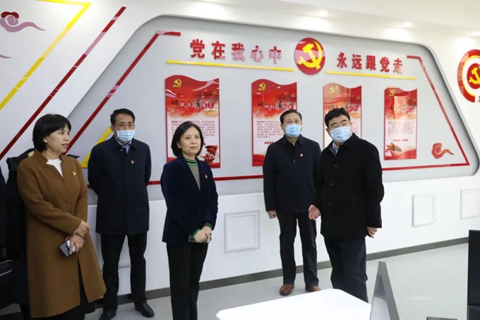 王萍一行参观了东方红广场、嘉兴楼实训基地、韶山楼红色文化,到井冈山楼参观了产教工坊、智慧教室、VR教室,随后到古田楼参观了学生公寓,到北平楼参观了廉政文化作品展、伟人塑像厅、将军书画厅、红色藏品展厅、百年党史馆等红色展馆。在浓郁的红色文化氛围中,全体人员接受了一次深刻的红色教育、党史教育、党性教育。