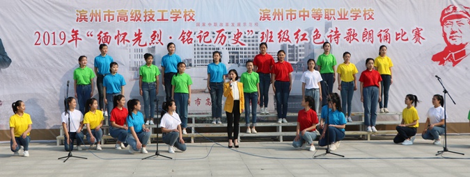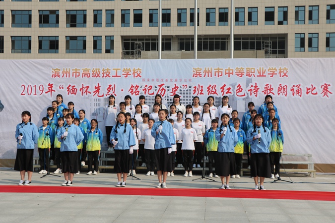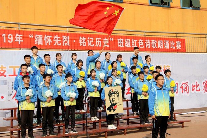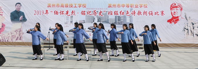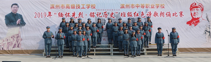 清明节是我国的重要传统节日,是进行革命传统教育和传统美德教育的好时机。2019年4月4日上午,滨州市高级技工学校团委组织的以“缅怀先烈,铭记历史”为主题的班级诗歌诵读比赛在新老校区同时举行。2500余名师生参加了比赛。