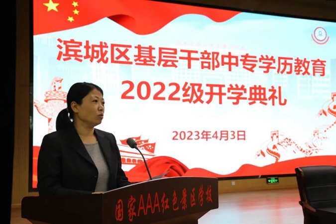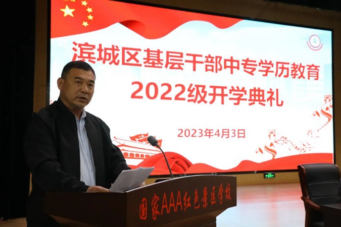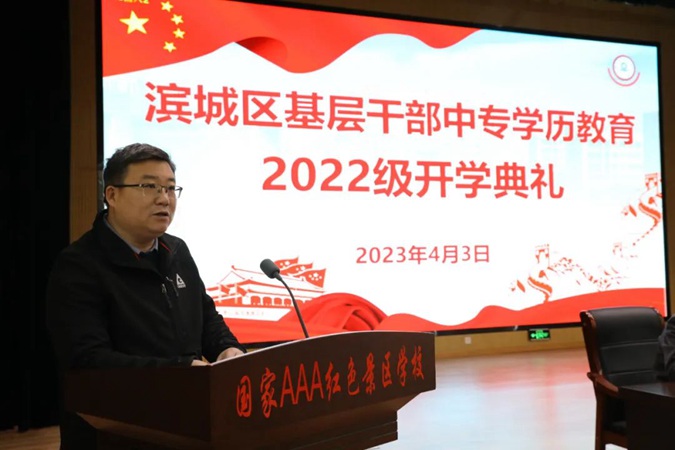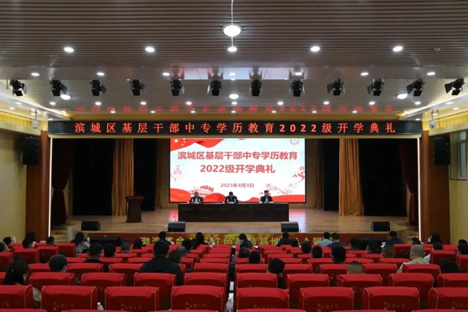 4月3日,滨城区2022级基层干部中专学历教育开学典礼在滨州市高级技工学校举行。滨城区委组织部副部长、编办主任张波,滨州市高级技工学校党委委员、副校长刘岳,各乡镇(街道)组织委员出席仪式,2022级基层干部中专学历教育全体学员参加,滨州市高级技工学校招生就业科科长赵鹏飞主持。