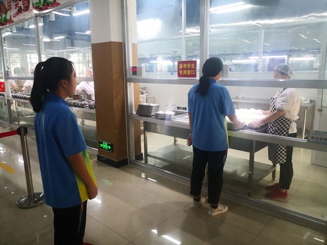 为了保证考生能吃到安全放心的饭菜,学校特设了春考学生专用窗口,以最低的价格、最快的速度、最可口的食物保障学生的一日三餐。